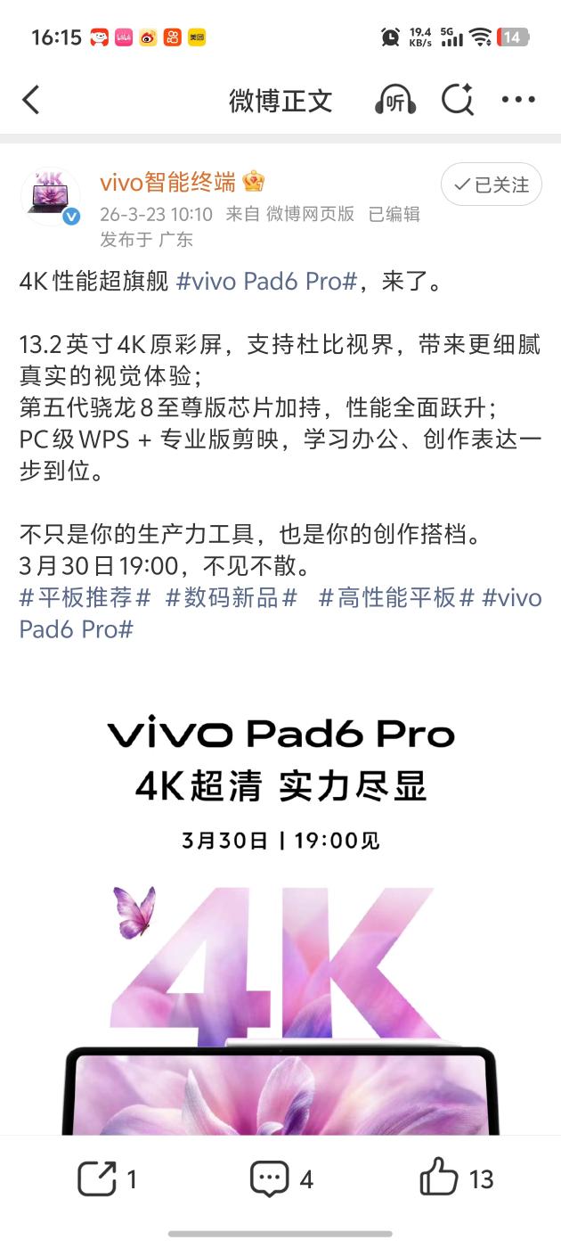 等了好久,vivo 這款旗艦平板終于來了!上手直接驚艷,顏值、性能、屏幕、生產(chǎn)力直接拉滿,妥妥的安卓平板新標桿!