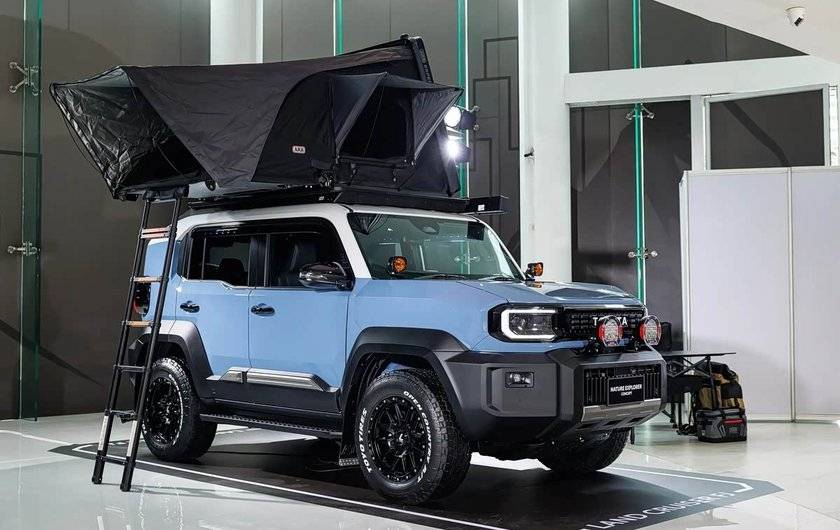 Nature Explorer概念車主打戶外露營實用場景,車頭搭載專屬定制照明燈具,可更好滿足夜間無照明非鋪裝路面行駛需求。車頂區(qū)域集成露營相關(guān)配置,包含可展開遮陽棚等戶外裝備,同時也配備了適配戶外場景的越野輪胎,兼顧戶外出行與輕度越野需求。