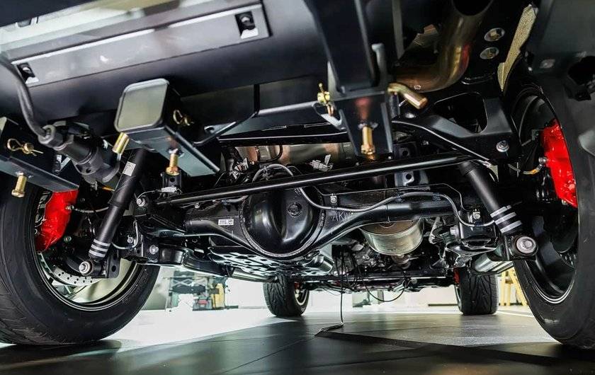Meridian版本整體設(shè)定貼近硬核專業(yè)越野定位,車輛換裝越野專用輪胎,同時加裝涉水喉、底盤防護板、車頂行李架及越野射燈等實用裝備,外觀營造出強烈的硬核越野氣場。此外,該車型針對懸掛系統(tǒng)與減震部件完成優(yōu)化升級,在強化越野性能的基礎(chǔ)上進一步提升實用性,能夠從容應(yīng)對各類復(fù)雜極端路況。